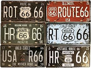 [エムティーエボコン] ブリキ 看板 ルート66 ROUTE 66 シリーズ ナンバープレート 6枚 セット A