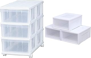 SAKEYEN 収納ケース チェスト 深型 引き出し キャスター付きの収納ケース ホワイト (3段)