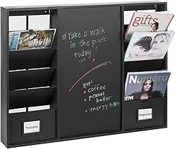 MyGift 34インチ 玄関 壁掛け ブラウンメタル メモ メッセージ黒板 / 10スロット ドキュメントオーガナイザー & メールソーターラック