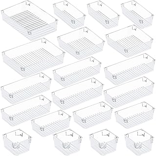 Puroma 20-pcs Desk Drawer Organizer Trays, 5 Different Sizes Large Capacity Plastic Bins Kitchen Drawer Organizers Bathroom Drawer Dividers for Makeup, Kitchen Utensils, Jewelries and Gadgets (Clear)