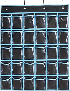 NOTAG ウォール ポケット 壁掛け 収納 ポケット 吊り下げ ポケット クローゼット 小物 収納 ポケット 収納袋 カレンダーポケット 布製 防水 透明 PVC 小物収納 フック付き 2 サイズ 12/ 36 ポケット (小さい, ブルー)