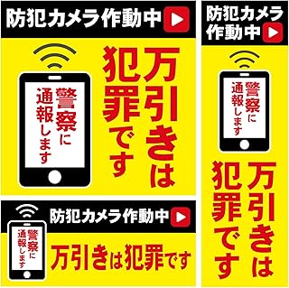 防犯ステッカー「万引きは通報します 1」3枚セット 目立つ便利なセキュリティーステッカー【SSC】 店舗での万引きや盗難の防止対策として最適 135×135mm / 60mm×195mm / 135×60mm 各1枚計3枚セット Aタイプ qb600041a01n0