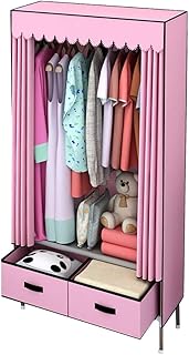 LuluLife ワードローブ 大容量 ハンガーラック シンプル 衣類収納ラック クローゼット 衣類収納 ワイドハンガー 引き出し2個付き 防水 防塵 防汚 幅70×奥行45×高さ168cm ピンク