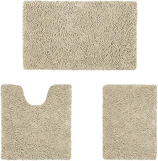 バスルームノンスリップマット 吸収性バスルームマット バスマット 3点セット トイレ バスルーム 寝室 キッチン 19.7インチ 31.5インチ 15.7インチ 23.6インチ 19.7インチ 19.7インチ (キャメル)