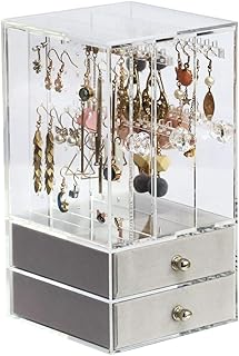 LUERME アクアクリル ジュエリー収納ボックス イヤリングディスプレイスタンド イヤリングオーガナイザー ホルダーハンガー イヤリングスタッド 3垂直引き出し付き ピアスケース ピアススタンド 大容量 収納
