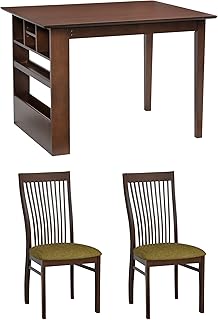タマリビング(Tamaliving) タルト ダイニングセット ダイニングテーブル 幅100cm 2人掛け 収納棚付き ダークブラウン/グリーン [チェア:ミール] [3点セット] 50003301-44