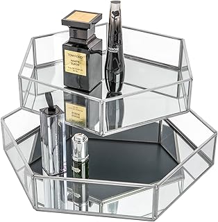 香水トレイ シルバーミラートレイ メタルフレーム 大型化粧台トレイ ドレッサー バスルーム ジュエリー ホームデコレーション (L+S)
