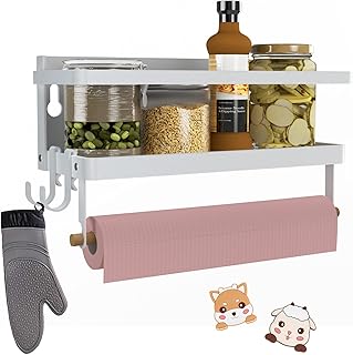 Dockii スパイスラック マグネット 冷蔵庫 マグネット スパイスラック マグネット バスルーム ラック キッチン収納 マグネット スパイスラック 収納 磁石ラック 穴開け不要 省スペース( 漫画のマグネットステッカー2枚付きエクストラ、フック2枚 (ホワイト)