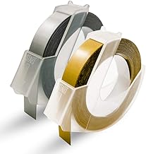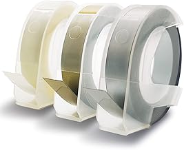 ダイモ テープライター ゴールド シルバー クリア 3巻セット 9mm幅X3ⅿ つやあり 3D立体・白文字 互換テープカートリッジ [Flowerty] (ゴールド・シルバー・クリア 3色セット)