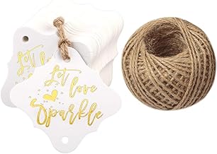 結婚式の記念タグ、100個入り Let Love Sparkle ペーパーギフトタグ 100フィートのジュート紐付き (ゴールド)