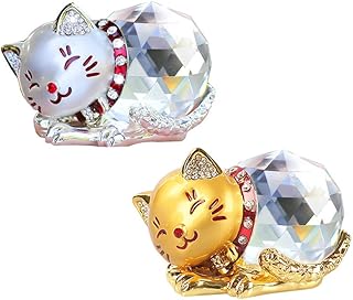 招き猫(2個セット) 置物 風水 水晶 クリスタル 猫 幸運 招き お願い ネコ ちゃん プレゼント 誕生日プレゼント 金運アップ 商売繁盛 装飾 置物 ゴールド シルバー (猫 ゴールド+シルバー)