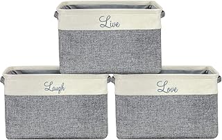 Sorbus ストレージバスケットセット [3パック] Lサイズ 15 x 10 x 9 Live Laugh and Love 大きな長方形ファブリック折りたたみ式オーガナイザービン 持ち運び用ハンドル付き (収納グレービン - スクリプトテキスト)