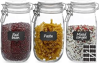 VERONES 50オンス ガラスジャー 3パック 密閉ゴムガスケット蓋 再利用可能なストレージジャー ジャム コーヒー 紅茶 蜂蜜 ビーン スパイス用