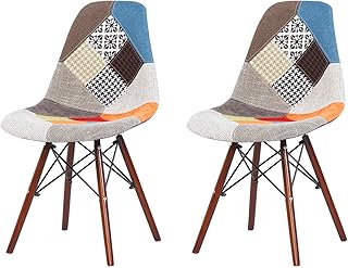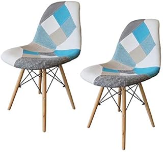 Fitmind イームズチェア 2脚 ファブリック ダイニングチェア シェルチェア パチワーク 北欧 おしゃれ Eames 椅子(パッチワーク,2脚セット)