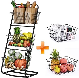 BIRDROCK HOME 3段ワイヤーバスケットスタンド 取り外し可能なバスケット付き キッチンオーガナイザー フルーツ野菜 野菜 金属製吊り下げ収納容器 パントリーバスルームキッチン用 自立式ディスプレイオーガナイザー