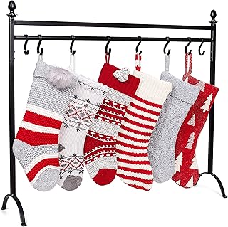 BIRDROCK HOME 8フック クリスマスストッキングホルダースタンド - モダンなホリデーデコレーションホルダー - ブラック 自立式装飾ハンガー - 高耐久