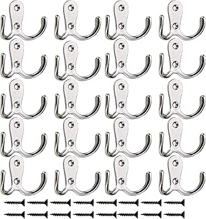 20個 コートフック 壁マウント メタルダブルフック ネジ40個付き 壁 シングルフック 吊り下げ ローブ タオル キー ジャケット 衣類バッグ 帽子 (シルバー)