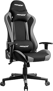 PRORACING ゲーミングチェア パソコンチェア オフィスチェア ゲーム用チェア 175度無段階リクライニング 可動式肘掛け ハイバック 耐荷重120kg 布地 グレー 108CAA
