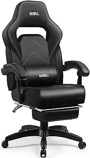 [Amazonブランド]Umi.(ウミ) ゲーミングチェア オフィスチェア オットマン ゲーム用チェア リクライニング フットレスト 多機能 パソコンチェア ハイバック ランバーサポート PUレザー ひじ掛け付き (ブラック)