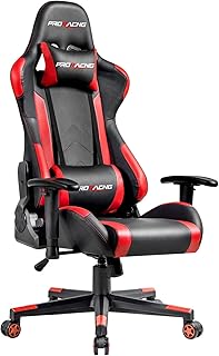 PRORACING ゲーミングチェア パソコンチェア オフィスチェア ゲーム用チェア 175度無段階リクライニング 可動式肘掛け ハイバック 耐荷重120kg PUレザー レッド 109AAA