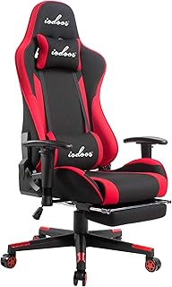 IODOOS ゲーミングチェア オットマン付き オフィスチェア ゲーム用チェア 175度リクライニング パソコンチェア デスクチェア 耐荷重120kg ハイバック 2D可動肘 ヘッドレスト クッション フットレスト付き 布地 レッド 79AAA