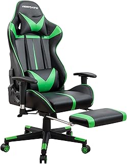 MESERACING ゲーミングチェア オットマン付き ゲームチェア オフィスチェア パソコンチェア 可動式肘掛け ゲーム用チェア 175度リクライニング クッション付き ハイバック 耐荷重120kg PUレザー 105CAA (グリーン)