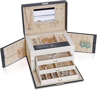 Vlando ジュエリーボックス 収納 アクセサリーケース 大容量の宝石箱母の日スイーツなプレゼント ミラー 鏡付き ピアス ネックレス 指輪 リング アクセサリー 指輪置き ジュエリーバッグ (5-ホワイト)