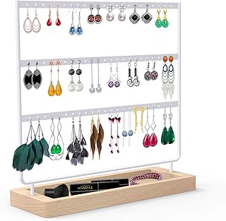 イヤリングオーガナイザー ジュエリーディスプレイスタンド 3段 イヤリングホルダーラック 木製トレイ付き イヤリング ネックレス ブレスレット リング 大きな収納 イヤリング ジュエリー ディスプレイ ツリー 女性や女の子へのギフトに