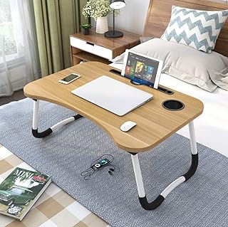 折りたたみテーブル ベッドテーブル ローテーブル ラップトップテーブル 凹溝付き ピクニック軽量 折り畳みテーブル 大容量表面 多機能キャンプ 食事 勉強 利用可 60X40X28cm (メープル)