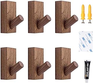 SMLHome 壁掛け木製フック ネジ付き ウォールフック コートラック 帽子掛け タオルハンガー コート、帽子、ローブ、タオル、寝室、クローゼット、バスルーム、玄関用の强力フック (ウォルナット-8cm, 5個+5粘着シート)