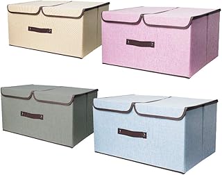 Senbowe Lサイズ収納キューブ [4個パック] リネン生地 折りたたみ式 収納キューブ容器 オーガナイザー バスケット 蓋付き ハンドル付き 取り外し可能な仕切り 家庭 オフィス 子供部屋 クローゼット用 17.7 x 11.8 x 9.8インチ