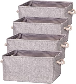 TENABORT 大型収納バスケットビン 折りたたみ式収納キューブボックス キャンバス生地 折りたたみ式オーガナイザー ハンドル付き クローゼット ホーム オフィス 衣類 棚 保育園用 グレー 4個パック