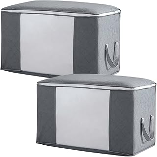 布団収納袋 大容量 羽毛布団 收纳袋 不織布 布団収納ケース 無臭 衣装ケース 着物収納 取っ手付き 透明窓付き 衣類収納袋 ふとん収納袋 (2個組/グレー)