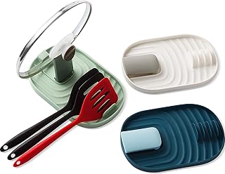 スプーン置き ポット蓋ホルダー 折りたたみ式スプーンホルダー3個と小さなシリコンスパチュラ キッチンカウンター用 ストーブトップキッチン用品ホルダー(6個、ホワイト1個、ブルー1個、グリーン1個、ブラック2個、レッド1個)