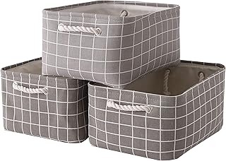 折りたたみ式収納バスケット 収納ビン 棚用 大型収納ボックス ロープハンドル付き収納箱 家庭やオフィス用 (15.7 x 11.8 x 7.8インチ) (グレー 3点)