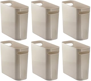 mDesign スリムプラスチック 長方形 小型ゴミ箱 くずかご ハンドル付き バスルーム キッチン ホーム オフィス 寮 子供部屋用 高さ10インチ 飛散防止 6個パック トープ/タン