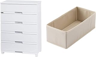 天馬 リビングチェスト 5段 幅75×奥41×高105cm フィッツプラスイージー FE7505 カプチーノ & 収納ケース PRX せいとんボックス 3個セット アイボリー L【セット買い】