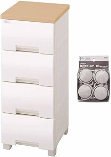 【セット買い】天馬 リビングチェスト 4段 (幅35×奥行41×高さ85cm) メープル+フィッツ差込式キャスター ストッパー付き